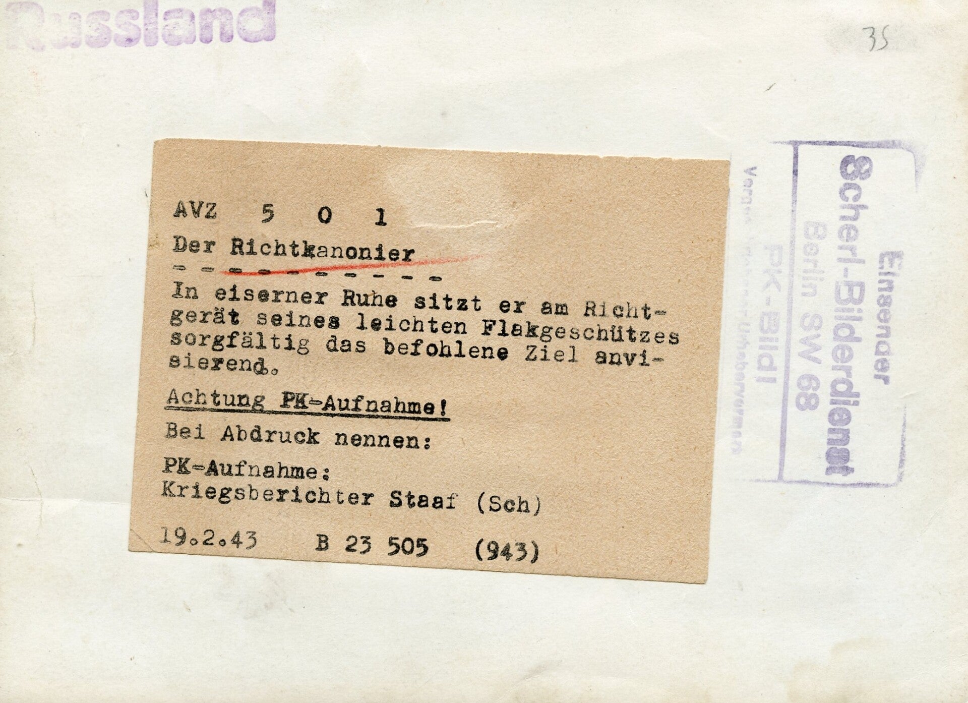 Duitse kanonnier aan het richten (19 feb 1943)